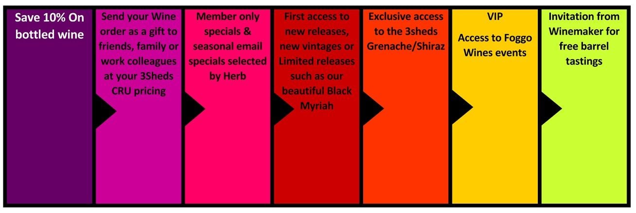 Shop now at our member prices and save 10% on bottled wine *Excludes 3sheds grenache or shiraz & already discounted wine offers